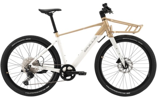 Auffällig unauffällig: „Eurobox-ready“ ist der großzügige Frontgepäckträger auf dem sich sich Einkäufe und sogar Getränkekisten mit einem Handgriff sicher transportieren lassen. Vorne im Träger ist ein leuchtstarker Scheinwerfer dezent und sicher geschützt integriert. Um das Fahrverhalten auch bei voller Beladung jederzeit „smooth“ zu halten, hat BULLS einen Lenkungsdämpfer verbaut. Dieser verhindert zudem ein Umschlagen des Lenkers im Stand.